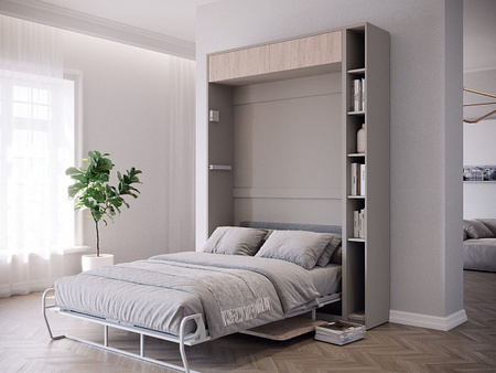 Трансформируемая модульная мебель оснащена механизмами (раскладные, выдвижные, поворотные) для смены функций — от компактного хранения к полноценному спальному месту или рабочему столу. Модули стандартизированы для легкой сборки/разборки, идеальны для малогабаритных пространств с меняющимися нуждами. Пример: трансформер стол-кровать «Рэгги» от компании «Трансмеб»: стол-кровать с газлифтом и шкафом-стенкой, раскрывающийся в рабочую зону.