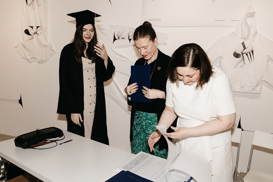 Прежде всего я учу их разрабатывать концепцию проекта, находить способы коммуникации со зрителями и потенциальными клиентами через инструменты дизайна. Находить эстетику, обладающую уникальными авторскими характеристиками. Конечно, в процессе они узнают какое-то немыслимое количество самых разных дополнительных вещей. Многие приходят, часто не умея говорить, формулировать свои идеи — но уже спустя короткое время я наблюдаю, что мой словарный запас становится их словарным запасом, терминология, которую я использую, становится их терминологией… И, конечно, практика проводить четыре защиты своего проекта в год — совершенно уникальна! Она приводит к тому, что не каждый взрослый профессионал так умеет защищать свою идею, как наши студенты. А ещё они учатся внимательно смотреть на мир и не просто смотреть, а видеть; для них развенчиваются какие-то мифы о мире моды — и формируются новые знания, которые оказываются на практике куда глубже и интереснее мифов и позволяют им потом двигаться дальше и выше.