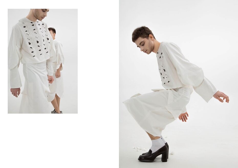 К области моды, конечно. Я уже очень много лет занимаюсь именно этим. С лета 2014 года мы начали пробовать регулярно показывать свой дизайн и за пределами России. Сначала был не вполне удачный опыт в миланском шоуруме, а затем мы предприняли попытку показать коллекцию в Париже: это организовала Анка Цицишвили, моя подруга, которая всегда занималась модой и поддержкой фэшн-брендов — сейчас она креативный директор магазина IERI в Тбилиси, а тогда жила в Москве. Это был эксперимент, шоурум на несколько дизайнеров в районе Марэ. Мы попробовали, поняли, что это важный и интересный путь, и в следующем сезоне (у Анки поменялись планы) начали сотрудничать с французским шоурумом Cube. С ним мы проработали несколько сезонов, и буквально в первом сезоне с нами случился счастливый момент.
