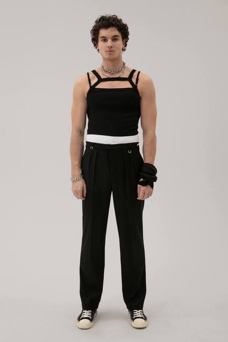 В нижней части брючин добавляем штрипку выполненными из основной ткани брюк.