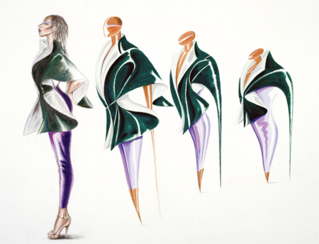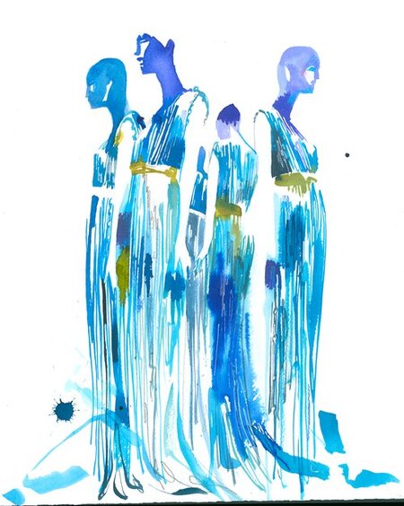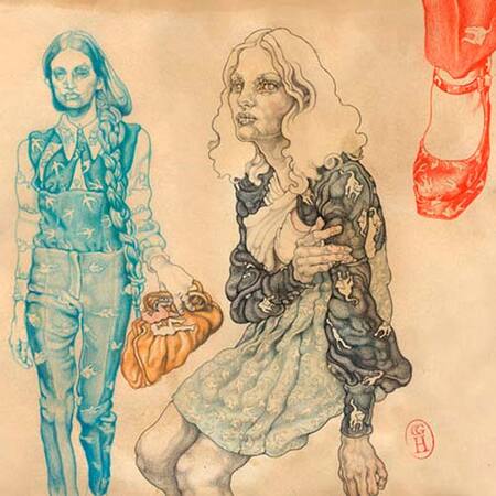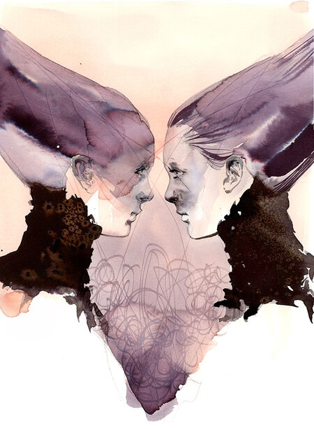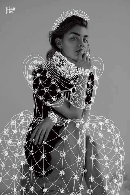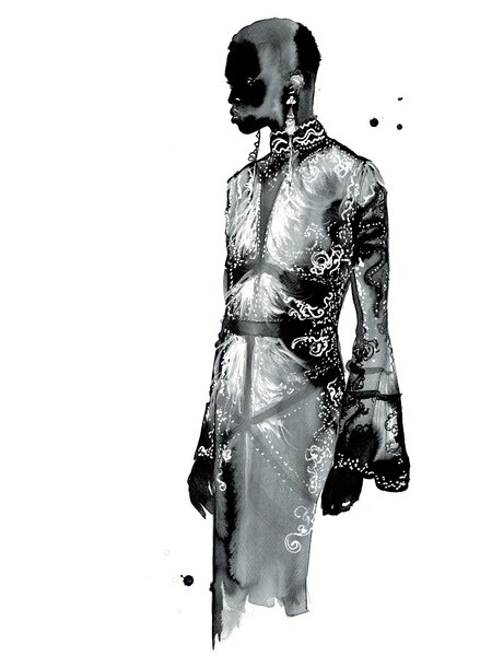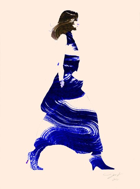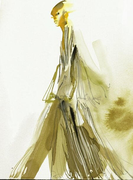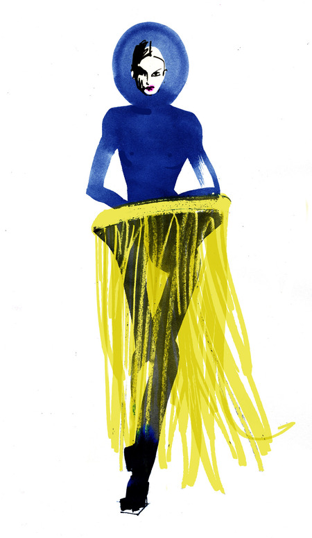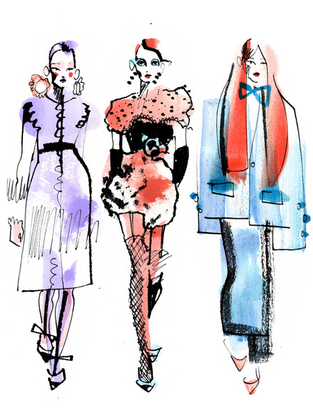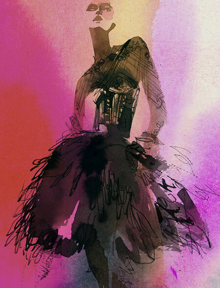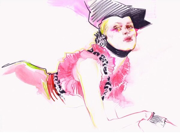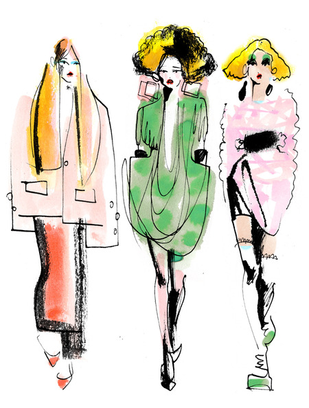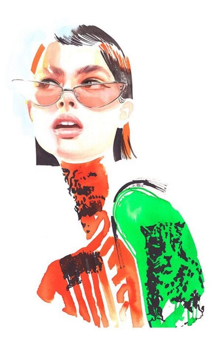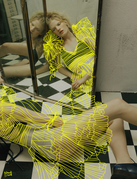 ROB UNETT Деятель сферы моды объединяются под кураторством арт-директоров и создают совместные коллаборации: иллюстратор Роб Унетт рисует в постпродакшн на плоском прозрачном материале, что создаёт новый виток поиска визуальной эстетики. Получаются многослойные гармоничные картинки, совмещающие в себе модную фотографию и дополненную текстуру. В классических же иллюстрациях автор использует работу с пятнами. Нет акцента на форме одежды и её реальности. ANNA HALAREWICZ Польский иллюстратор усиливает эффект размножением тушевой силуэтной линии, также в её работах встречаются другие интересные эксперименты, например, накладывние полупрозрачного изображения на другой слой. ILIAS WALCHHOFER Этот художник также делает графику уже поверх фотографий, зачастую внося их в раздел модных изображений пририсованными образами, но в своём стиле.