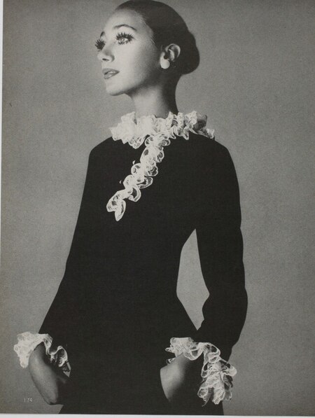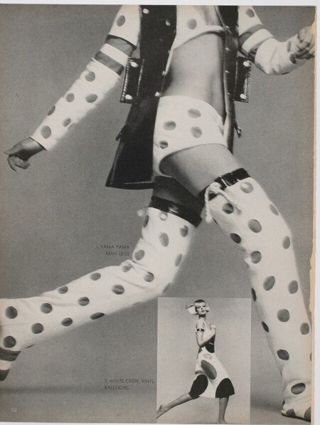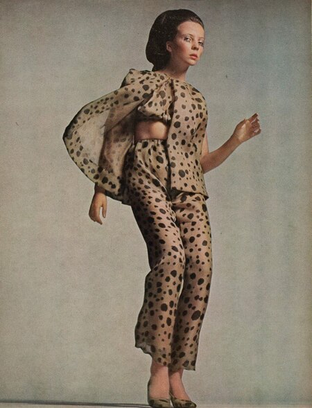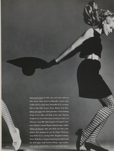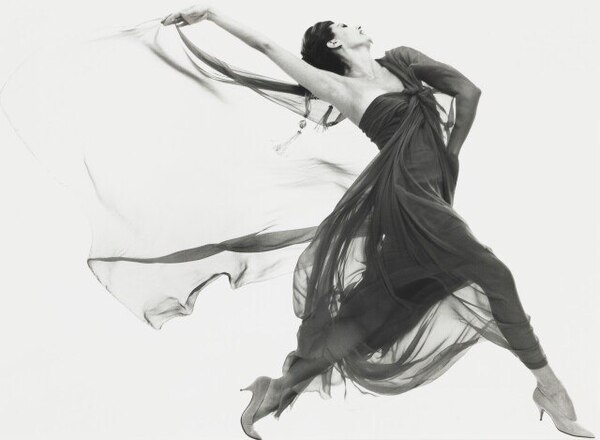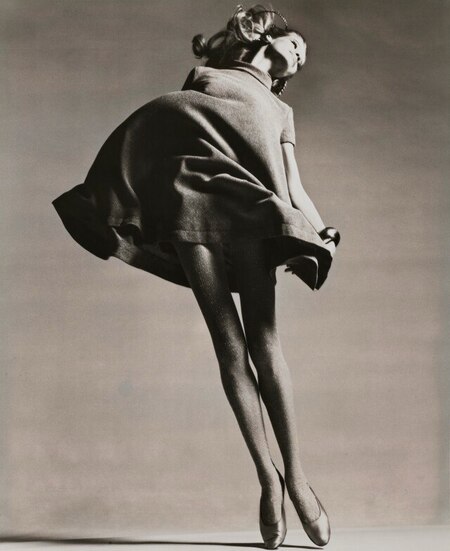 Многие студийные снимки показывают летящие модели в модных платьях. Так автор оживлял кадр, делал его более заментным и экстравагантным. Также, для большей выраженности и игры черно-белого цвета, в костюмах смешаны контрастные цвета и интересные фактуры.