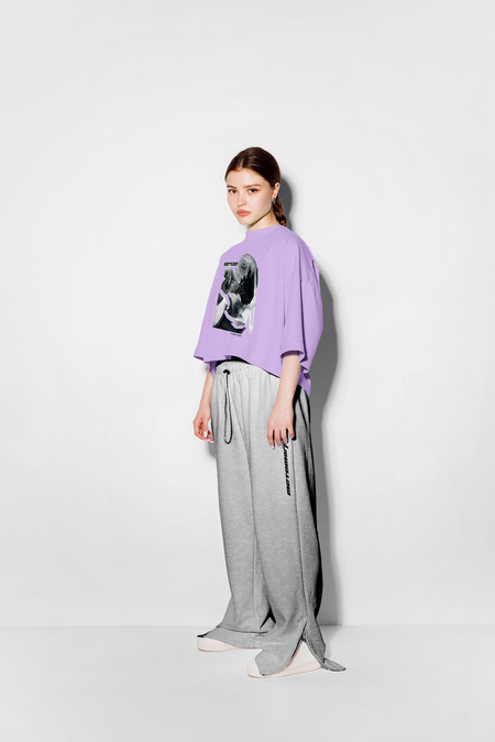 футболка и кроп-топ Loie, 2700 р, размеры: S, M, состав: 95% холопок, 5% лайкра | брюки Metamorphosis серые, 3000 р, размеры: S, M, состав: 55% холопок, 45% пэ