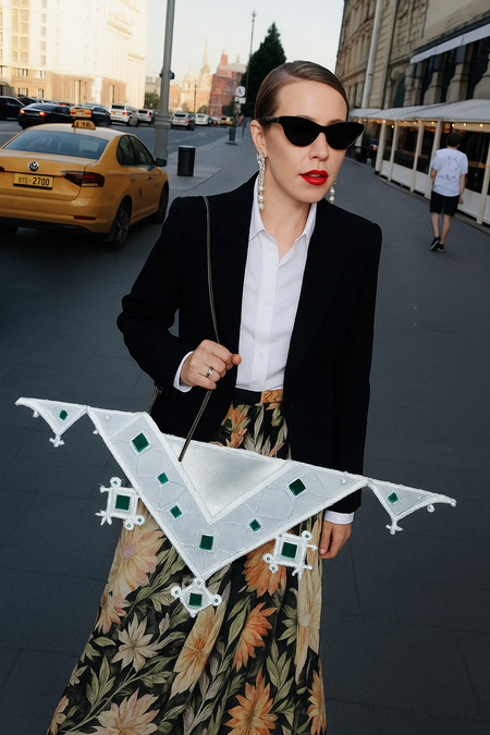 Большой треугольный клатч — это не просто аксессуар, а визуальный манифест ее стилевой стратегии, где красота, статусность и функциональность синтезированы в единый знаковый объект.