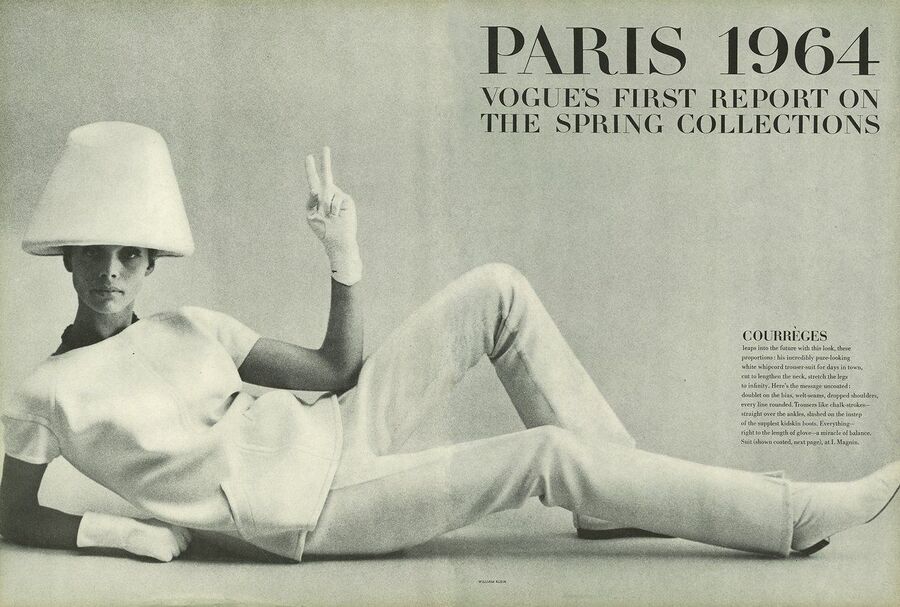 Вместе с темой космоса звучит идея нарушения границ и старых догм. «Эскимосские очки» — известный аксессуар Курежа. Андре Куррежа, который еще раз говорит о том, что этот дизайнер больше про концептуальную моду.