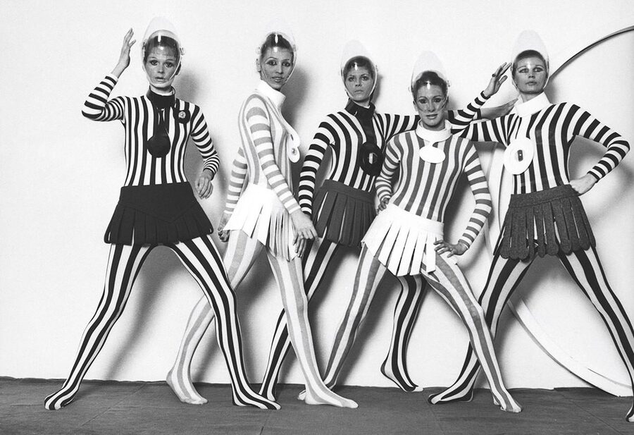 Женщина в моде Кардена больше похожа на стюардессу космического корабля, чем на леди. Он тоже активно использует космическую тематику, создает подобия скафандров, футуристических платье и костюмов.