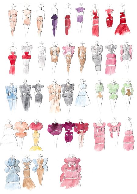 Модуль делится на два блока: 1. Структура коллекции. Средства объединения моделей костюмов в коллекции. Виды композиционных связей: Тождество. Сходство. Контраст. Ритм Микс композиционных связей. Логические ряды. 2. Технический рисунок.