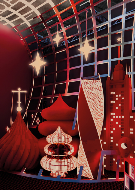 Основная идея стенда — «Волна инноваций» представляет собой волнообразную сетку из паттерна многоэтажных домов, которая захватывает узнаваемые конструкции Москвы вместе с иллюстрациями, демонстрирующие детские идеи. «Волна инноваций» визуализирует постоянный прогресс, так как город никогда не стоит на месте, развиваясь, а детские идеи реализуются.