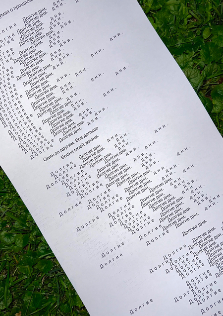 Типографическое облако и наклонные трехстишья символизируют капли дождя, которые передают атмосферу движения и весеннего пробуждения