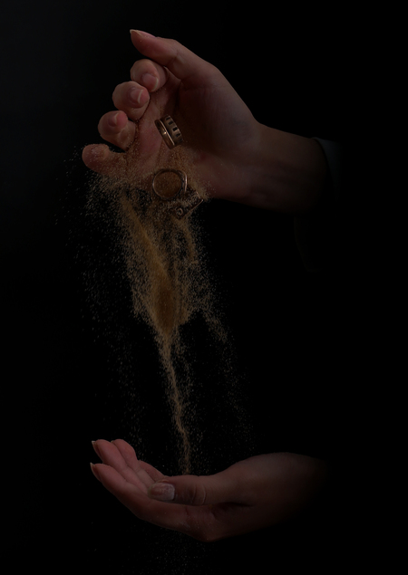 Серия включает два кольца из бронзы, напоминающей античное золото, они отсылают к непрерывному движению — течению времени, которое не стоит на месте, но и не уничтожает всё до основания.