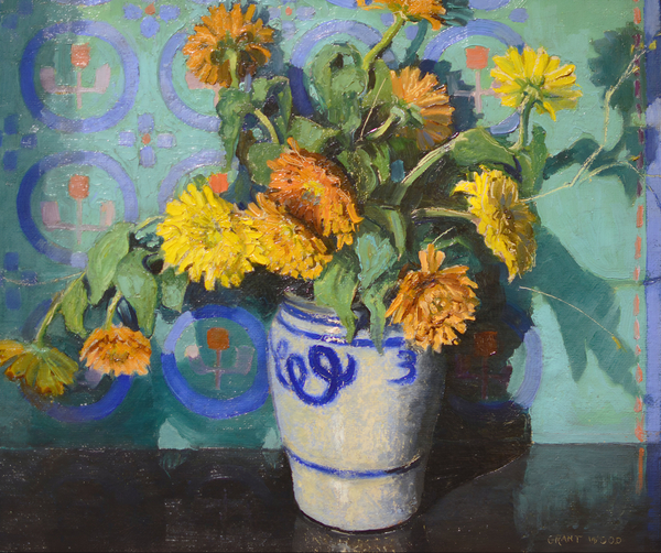 «Календулы», Грант Вуд, 1928–1929 гг. «Букет подсолнухов», Клод Моне, 1881 г.