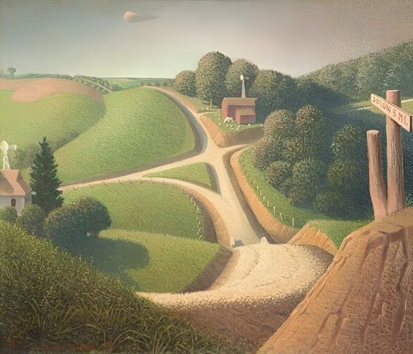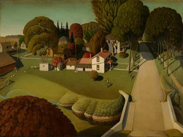 Вуд проводит идеализацию сельской местности и избегает изображений больших городов, используя регионализм, чтобы подчеркнуть разницу между природой и человеческим вмешательством.