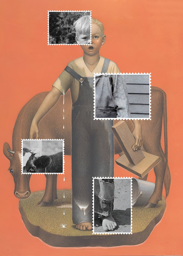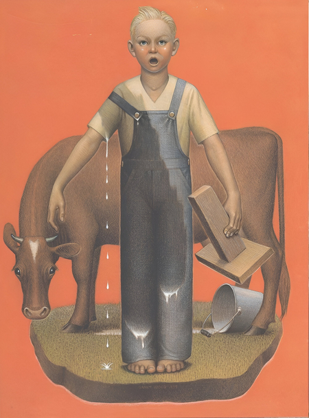 «Мальчик доит корову», Грант Вуд, 1932 г.