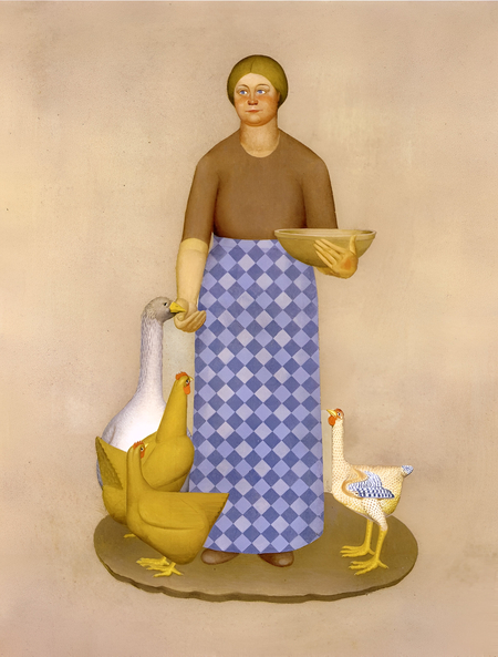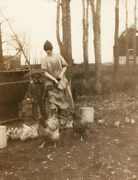 «Жена фермера с курицами», Грант Вуд, 1932 г. Историческая фотография из жизни американских фермеров Северной Дакоты