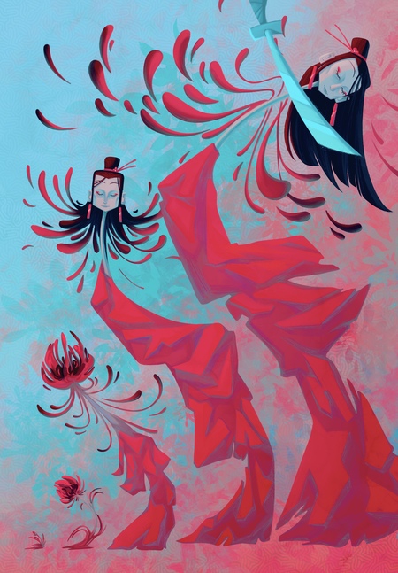 Серия портретных иллюстраций, в которых я решила показать три этапа жизни китайской пиратки Чжэн Ши: когда она была куртизанкой на «цветочной лодке», когда стала королевой пиратов и когда в старости управляла игорным домом.