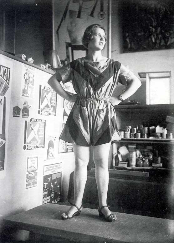 На голове — косынка из ткани, напечатанной по узору Любови Поповой. Фото А. Родченко. 1924 год.