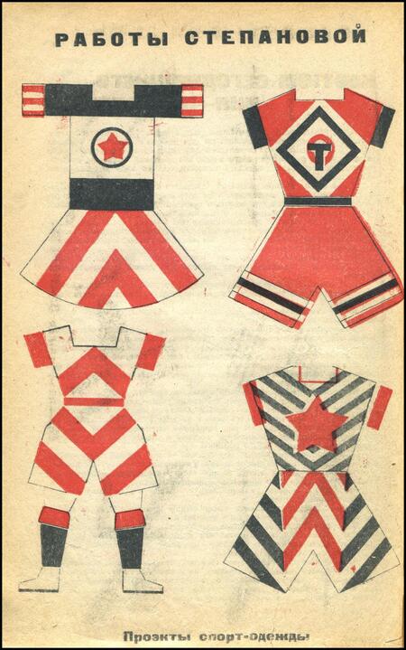 Эскизы и готовая спортивная одежда Варвары Степановой, 1923 г.