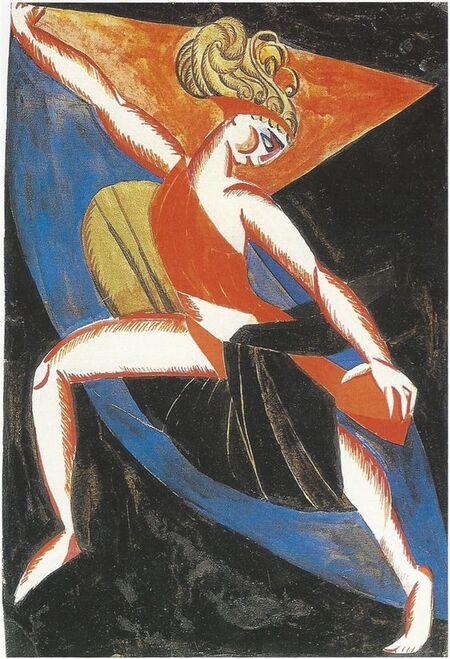 Эскиз женского костюма вакханки к спектаклю «Фамира Кифаред» И. Ф. Анненского. Художник А. А. Экстер, 1916 г.