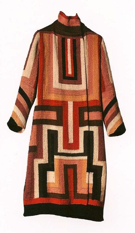 Слева — «Три женщины, формы, цвета», Соня Делоне, 1925 г. Справа — пальто, Соня Делоне