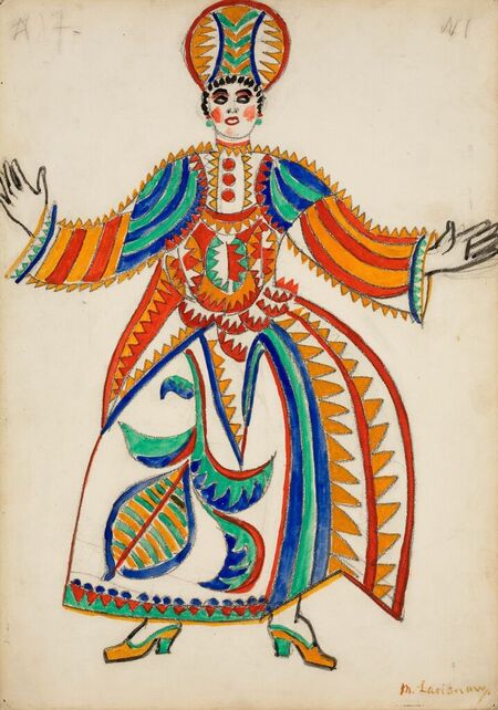 Жена шута. Эскиз костюма к балету «Шут». Музыка С. Прокофьева, постановка М. Ларионова, Т. Славинского, 1921 г.