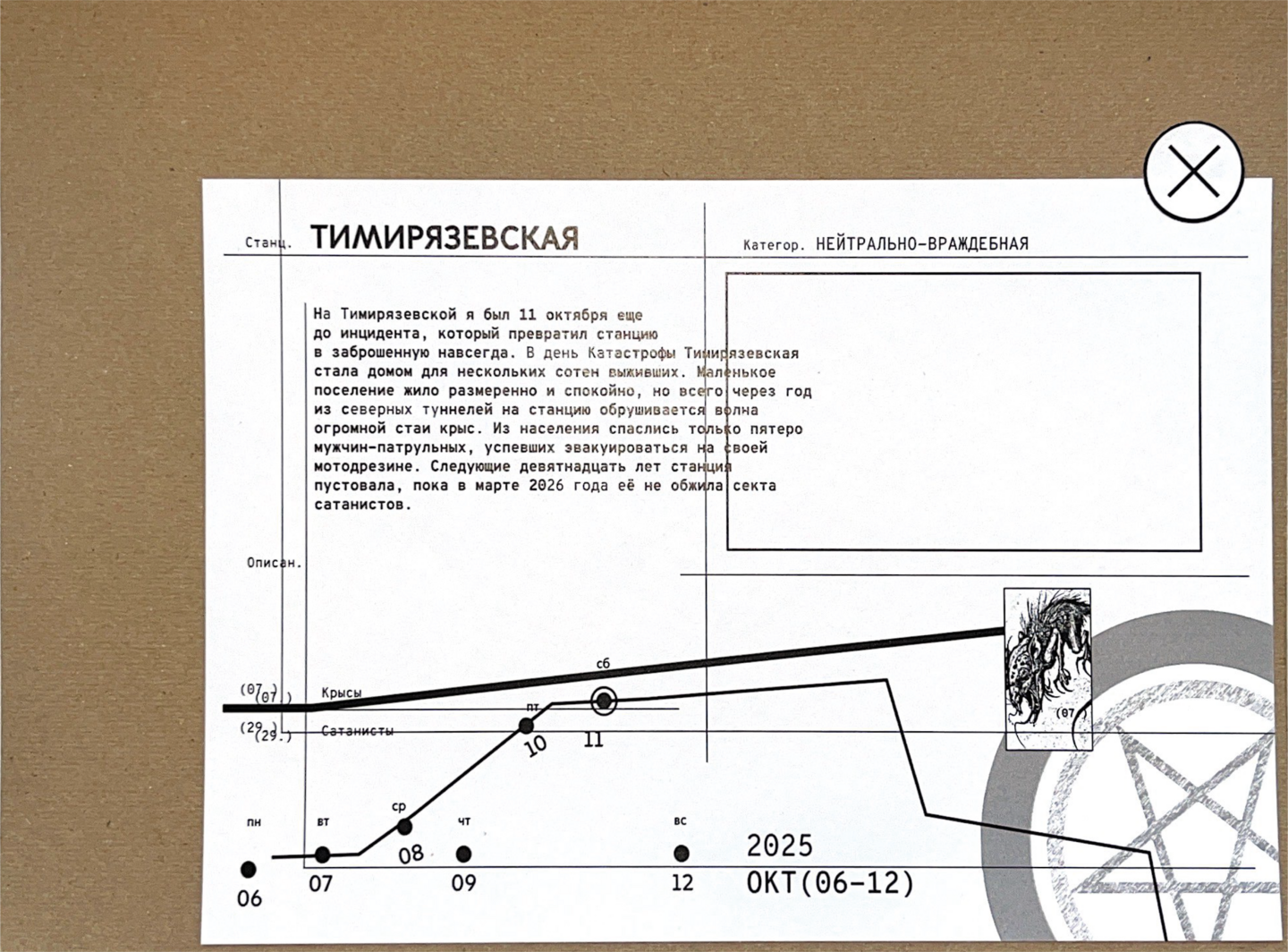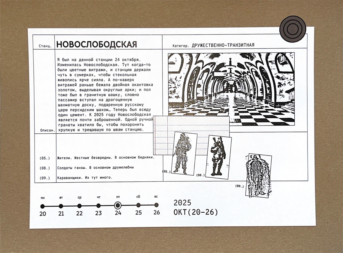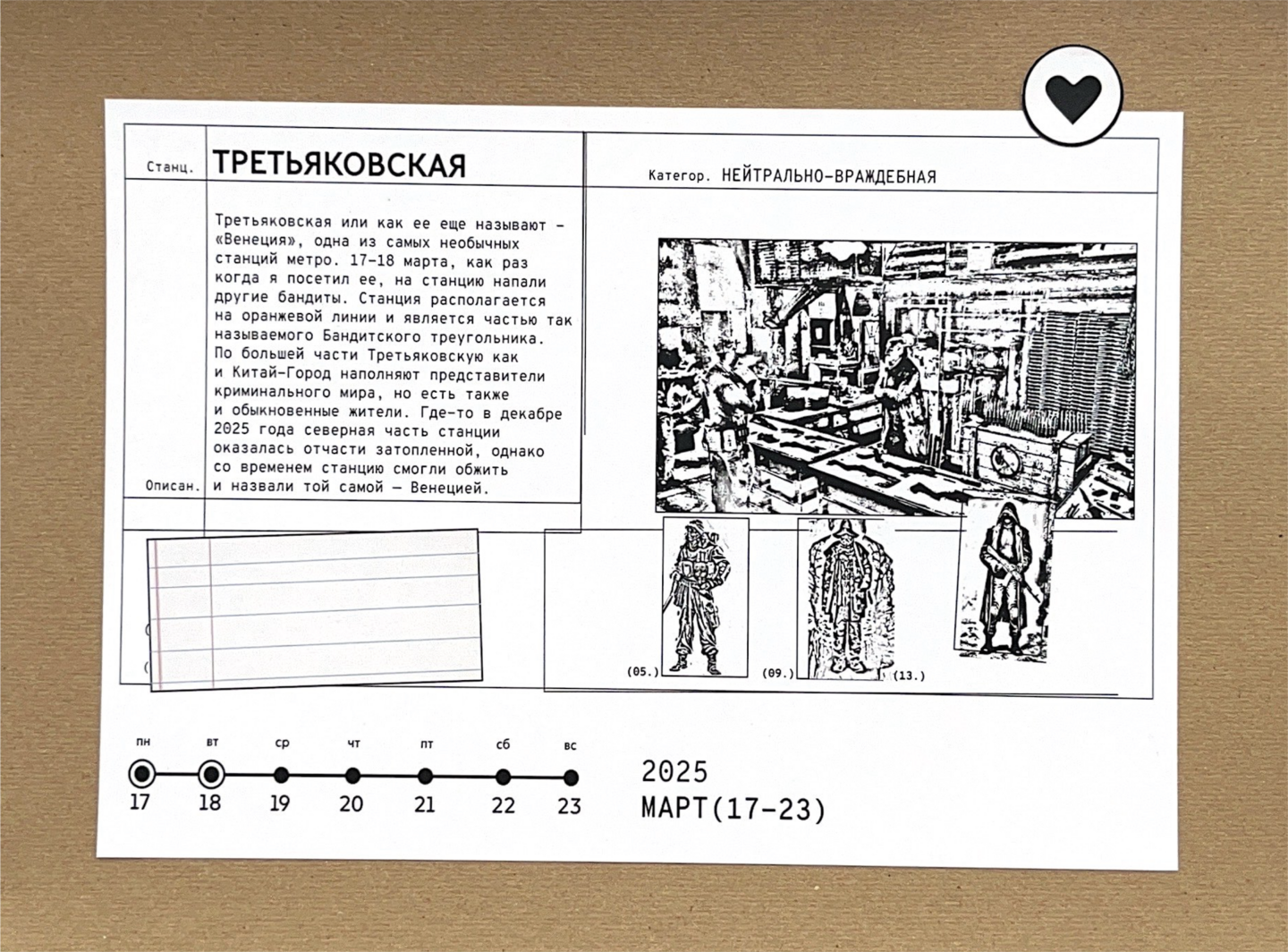 В 2033 году жителем метро в отдаленной его части был найден архивный календарь сталкера, датированный 2025 годом. С помощью путешествия и исследования всего метро, он пытался найти способ возродить жизнь наверху и вернуться туда, но умер внезапной смертью от эпидемии чумы на последней станции и его архив на долгие годы затерялся в метро.