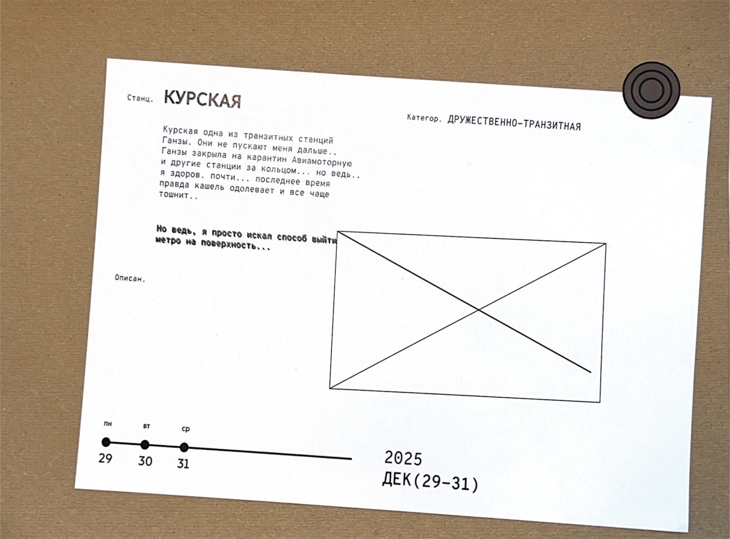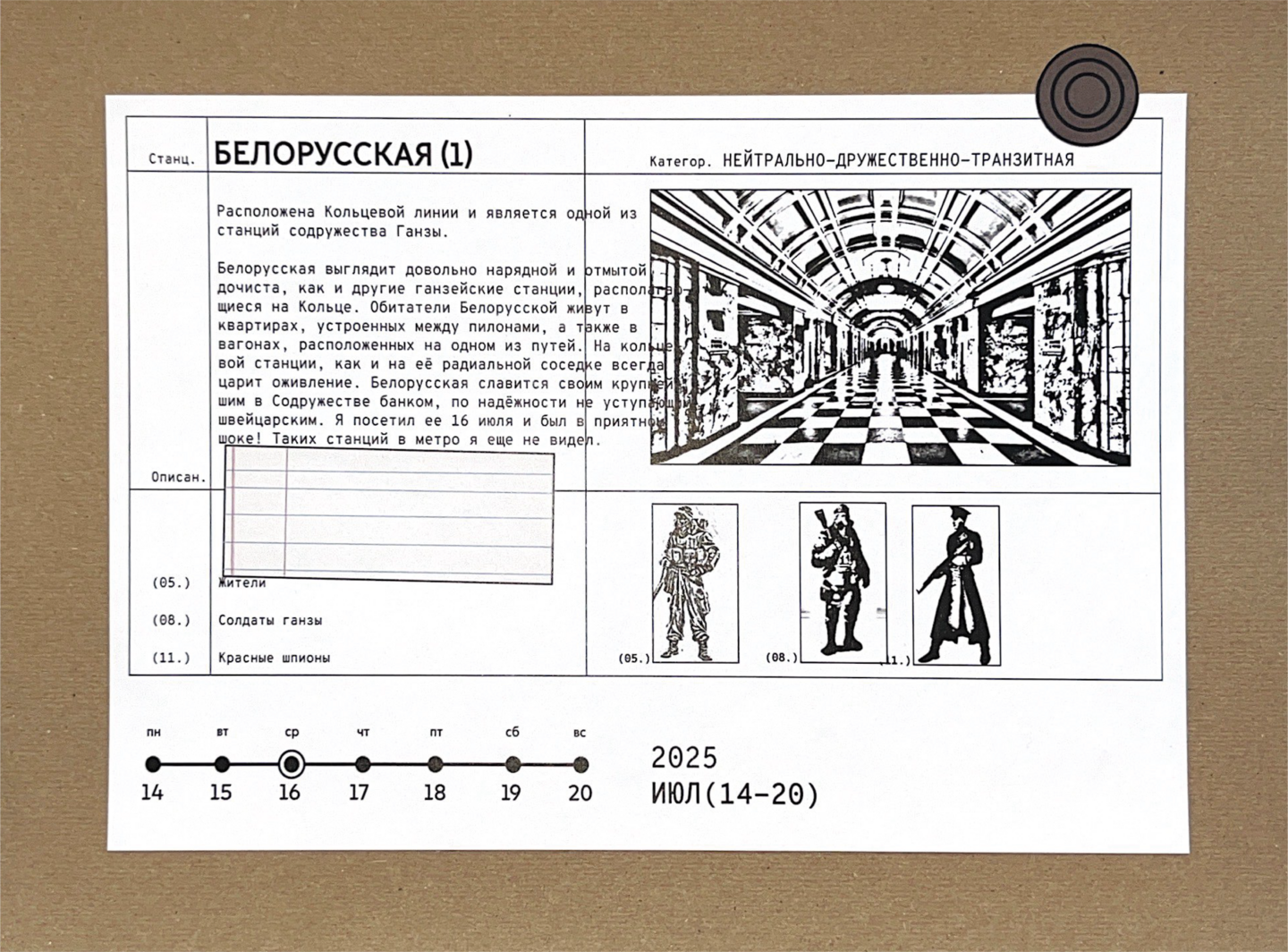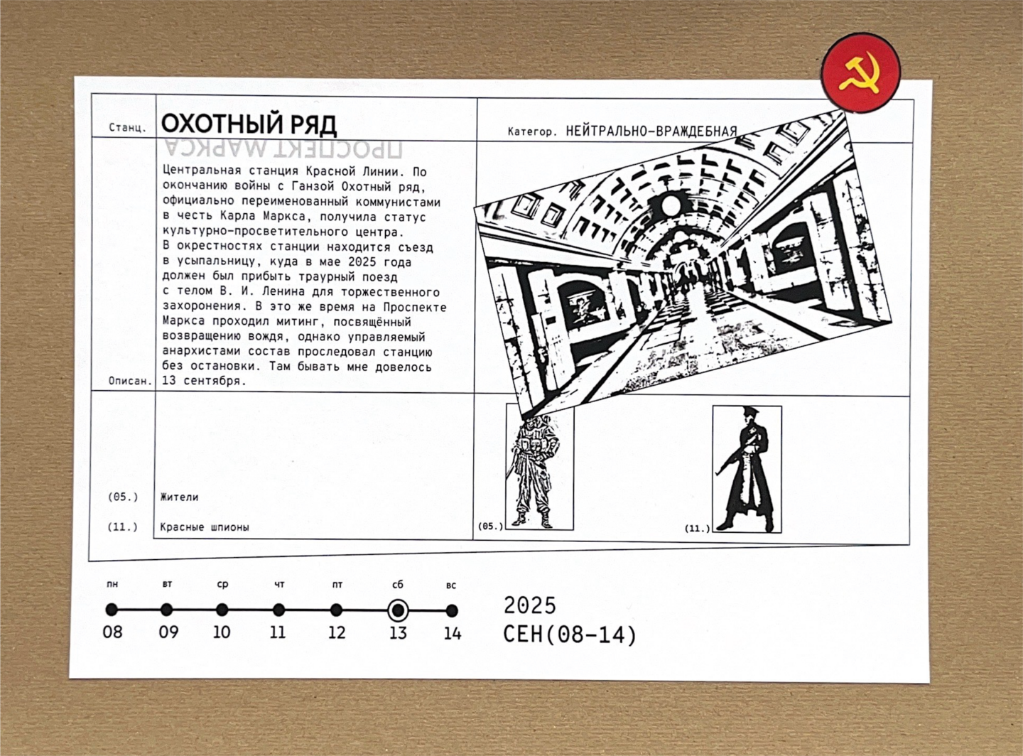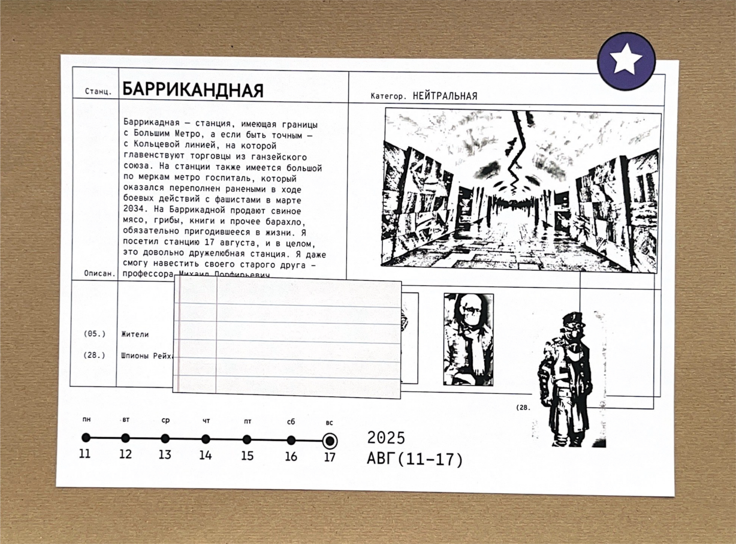В 2033 году жителем метро в отдаленной его части был найден архивный календарь сталкера, датированный 2025 годом. С помощью путешествия и исследования всего метро, он пытался найти способ возродить жизнь наверху и вернуться туда, но умер внезапной смертью от эпидемии чумы на последней станции и его архив на долгие годы затерялся в метро.