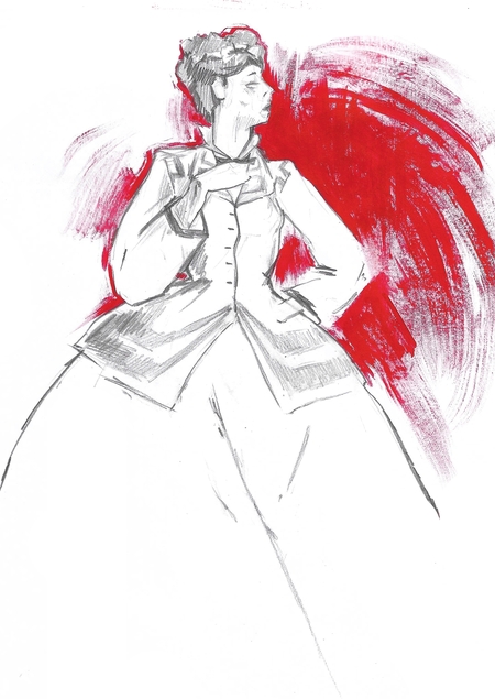 1-й блок направлен на изучение и прорисовку костюма или предмета костюма по КП в различных графических приемах, стилях, идеях