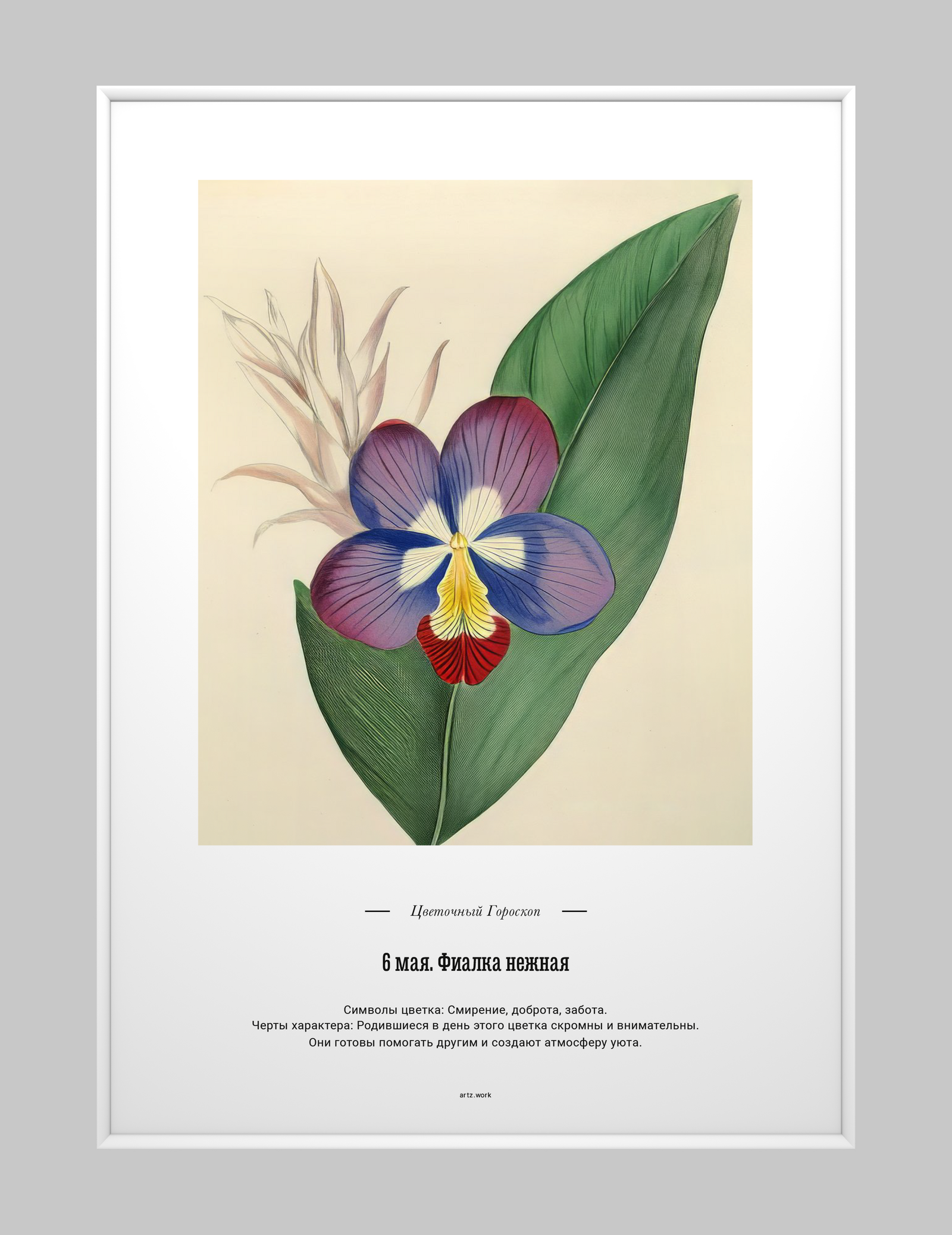 Символы цветка: Смирение, доброта, забота. Черты характера: Родившиеся в день этого цветка скромны и внимательны. Они готовы помогать другим и создают атмосферу уюта.