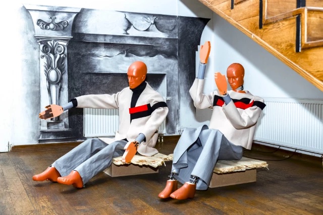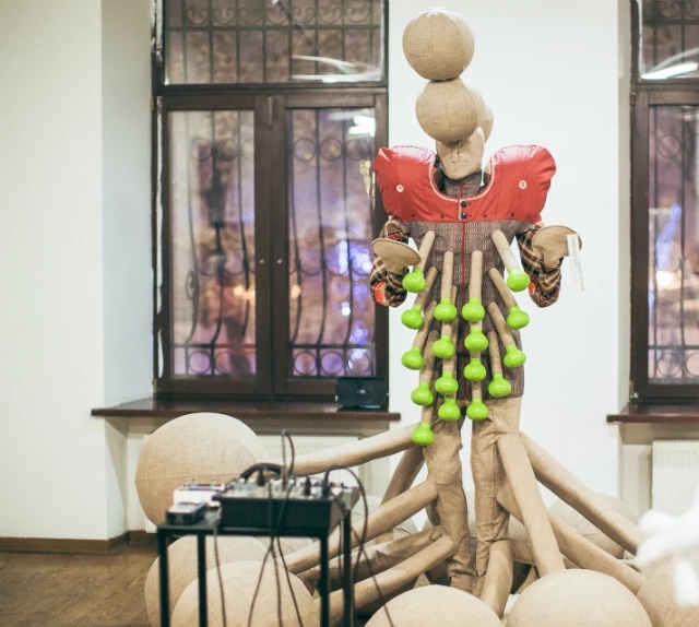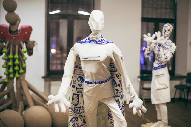 Одним из самых необычных экспонатов стал образ «Рыцарь бесшумья», созданный Андреем Бартеневым. Этот футуристический персонаж — регулировщик потоков экспозиций — был облачен в латексный костюм с зелеными «ложноножками» и отростками-шарами, вызывающими ассоциации с биоморфными скульптурами Эрнесто Нето. Его миссия — защищать важное музейное правило: «Не шуми и не прикасайся!».