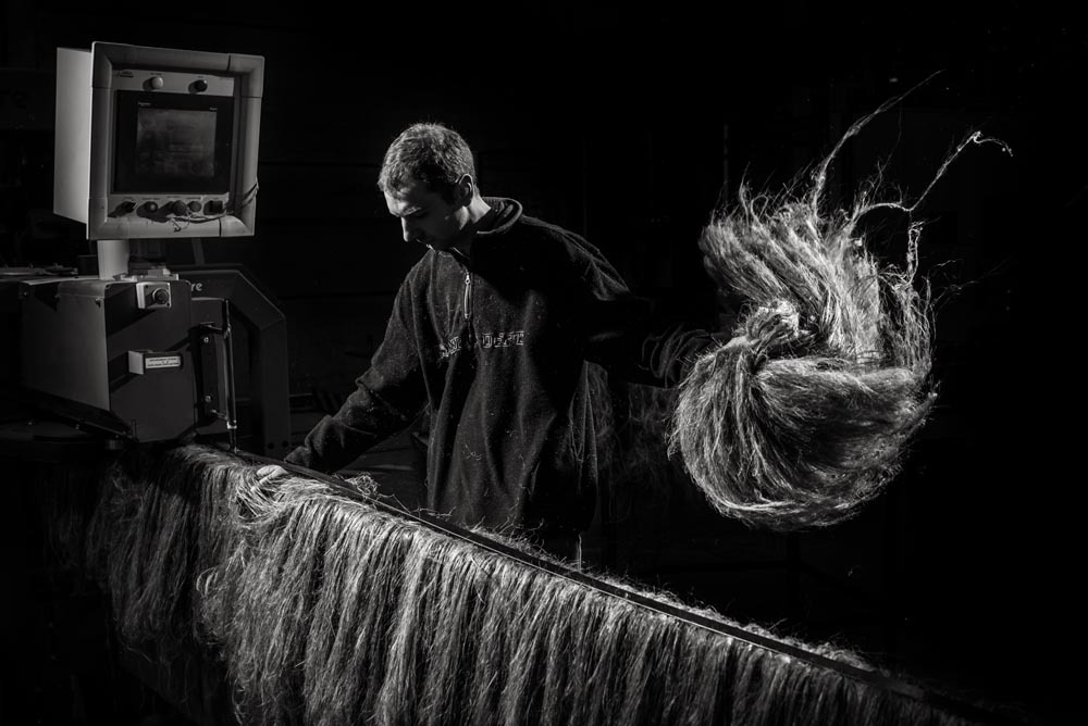 Принцип чесания льна, фотография с фабрики, Бельгия, 2010 г. https://dzhut.ru/wp-content/uploads/2023/07/len-chesannyj.jpg. Дата обращения 09.10.2025.