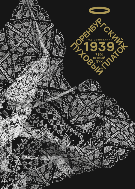 Orenburg’s swollen handkerchief is a traditional Russian knitted piece of goat cannon. He is known for his weightlessness, warmth and auurity, as well as for his legendary ability to pass through the wedding ring. This ease and grace formed the basis of the identics, where the handkerchief became primarily visual, and the logo symbol conveys the skill, tradition and subtlety of the craft.