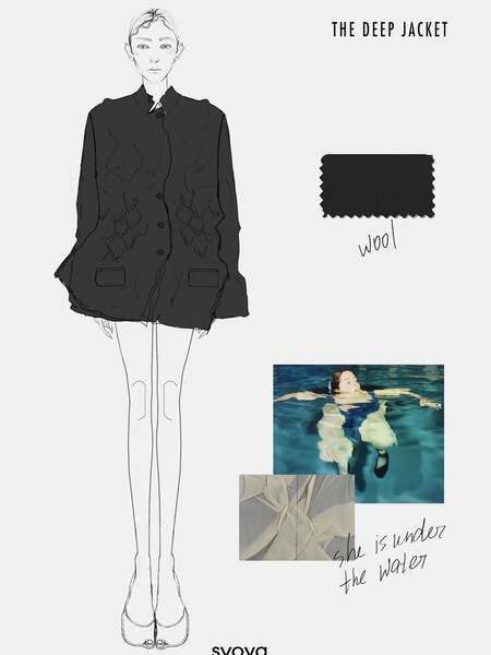 Siren, 2025 Нарратив коллекции отсылает к образу сирены как существу на грани — между поверхностью и глубиной, внешним и внутренним, женственным и пугающим. Визуально она строится на контрастах: невесомые ткани (шелк, тонкий трикотаж, органза) сочетаются с наружными швами и фрагментами подкладки, вывернутыми наизнанку.