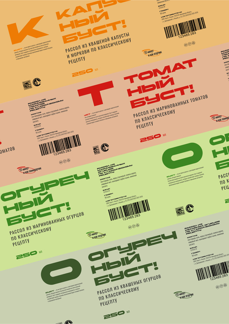 «Буст!» — это линейка питьевых рассолов для устранения похмелья, нацеленная на молодую аудиторию. В рамках проекта была разработана упаковка для таких рассолов.