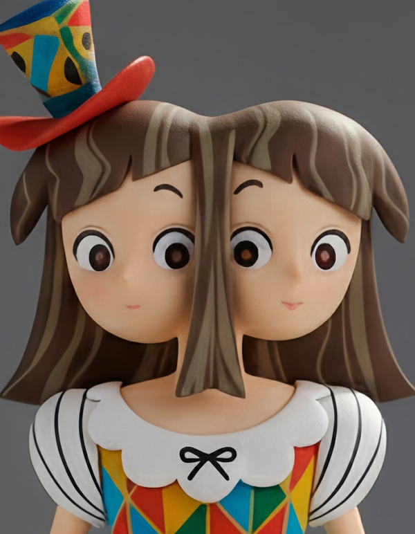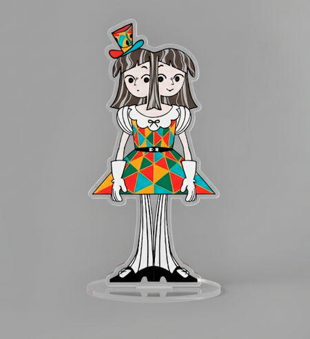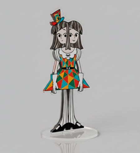 Нейросеть: Gemini Промпт: Acrylic standee of a character, full body, gray background, transparent acrylic base with reflection, professional product photo style, soft studio lighting, focus on the character, realistic acrylic effect, shadow under the stand, cute merchandise aesthetic.