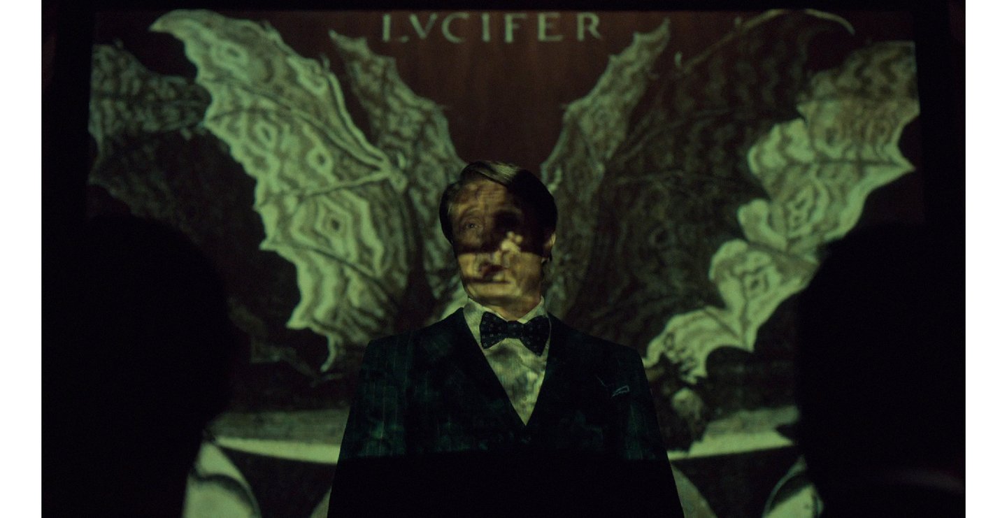 Тогда же мы наблюдаем кадр, на котором проекция рисунка Корнелиса Галле с изображением Люцифера накладывается на лицо Лектера. Это можно считать прямым указанием режиссёров на сатанинскую сущность Ганнибала.