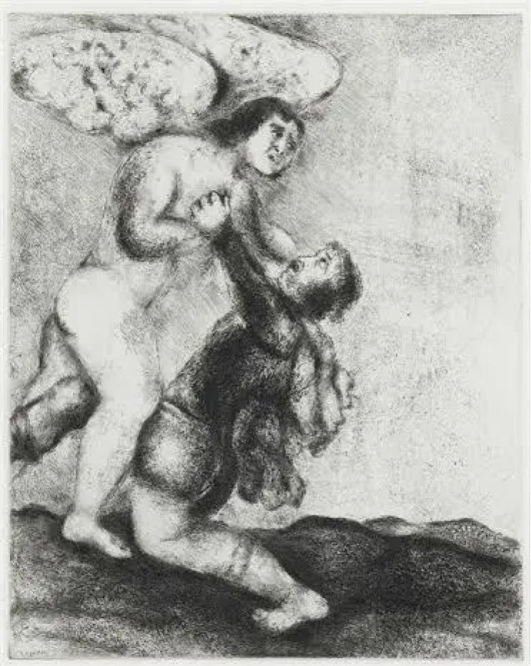 Марк Шагал «Борьба Иакова с ангелом», 1956. Источник изображения: https://www.goldmarkart.com/products/la-lutte-avec-lange-wrestling-with-the-angel (Дата обращения: 20.11.25)