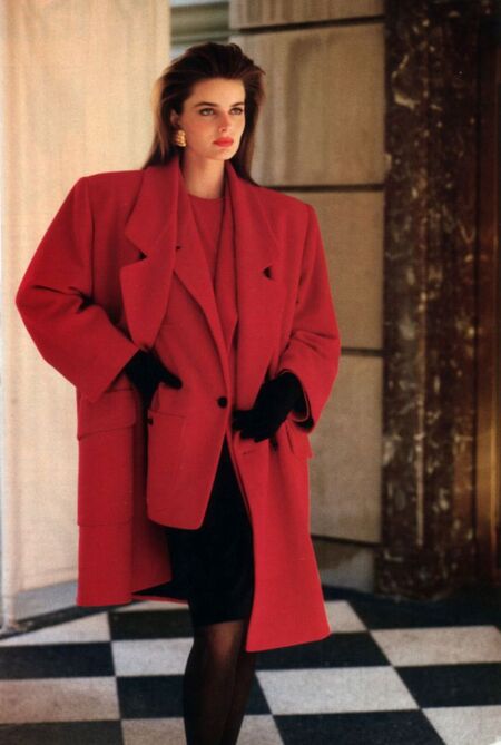 Слева: пример пальто-оверсайз, 1980-е годы // Справа: Рене Симонсен для Vogue Italia, 1983 год.