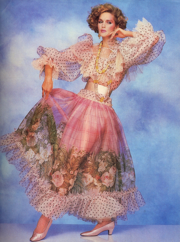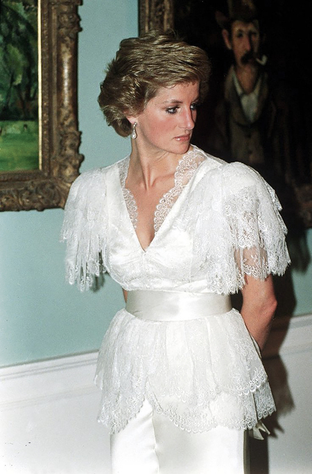 Тренд на неоромантизм начался после свадьбы принцессы Дианы и принца Чарльза . Свадебное платье Дианы было выполнено в стиле 1880-1890-х годов. Он включало в себя рюши, кружево, летящие воланы, что, конечно, было резким контрастом с костюмами яппи.