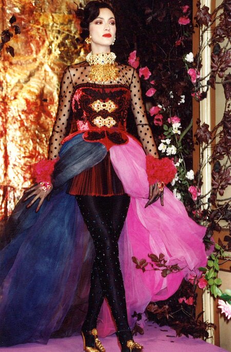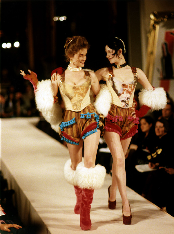 Так, в коллекции Portain Вествуд напрямую использует образы картины художника эпохи рококо Франсуа Буше «Дафнис и Хлоя». Центральным элементом коллекций Вествуд был, конечно же, корсет, приподнимающий бюст. Эта тенденция продлилась и в 1990-е годы. При этом к образам прошлого обращалась не только Вествуд. Подобные образы встречались и в работах Карла Лагерфельда, Франко Москино, Кристиана Лакруа и других модельеров.