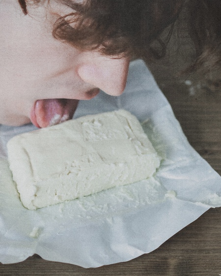 Это попытка исследовать внутренние переживания через базовые элементы жизни, такие как кубик льда или кусок масла.