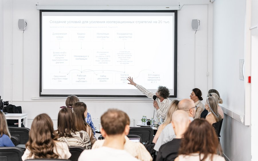 Основатель Института развития индустрии моды Beinopen, ведущий эксперт, лидер проекта «Система моды» в ИРКИ НИУ ВШЭ Алексей Баженов как модератор обозначил, что в этой части конференции, он с коллегами расскажет про образовательные проекты.
