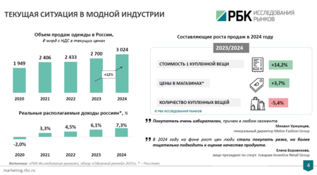Сейчас происходит кризис или трансформация рынка? Ответ будет зависеть от точки зрения. С макроэкономическими процессами все хорошо, люди стали зарабатывать больше. Стоимость одной вещи тоже выросла. У покупателей появилась тенденция приобретать уникальные вещи за более высокую цену, чем массмаркет. При этом количество купленных вещей упало на 5%. Явный кризис испытывает офлайн-розница, которую вытесняет онлайн.