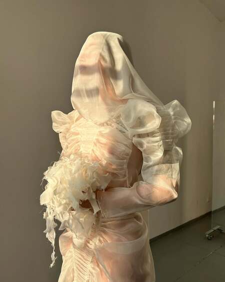 «Их эстетика — это апсайкл „на богатом“: сложные конструкции, прозрачные ткани, скульптурные драпировки и желание все потрогать. Вещи Neegoosh выглядят как фрагменты сна за счет своей визуальной хрупкости».