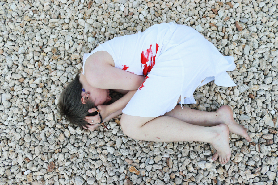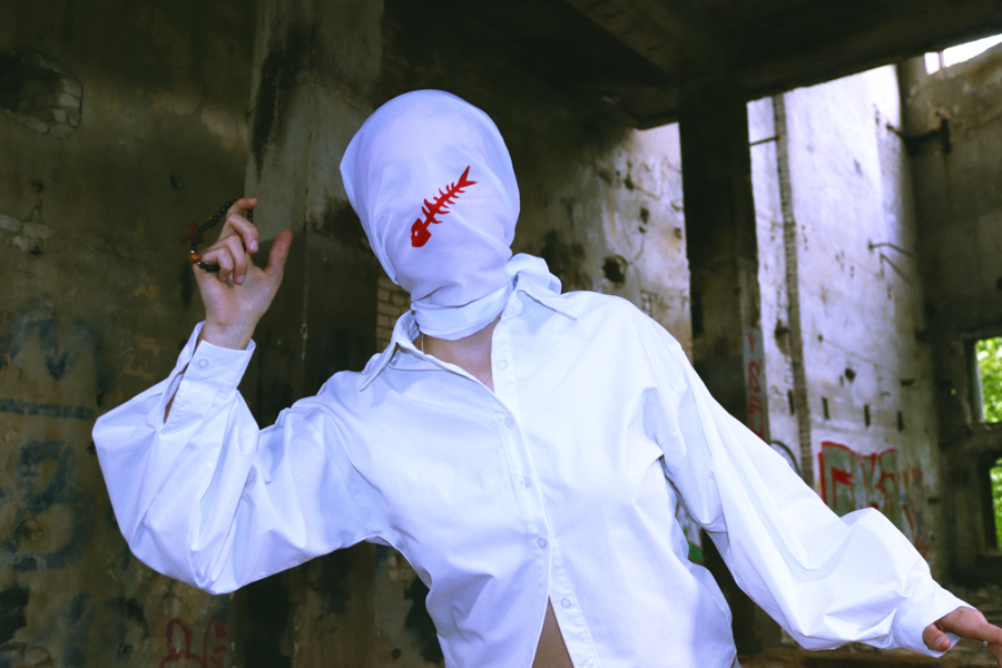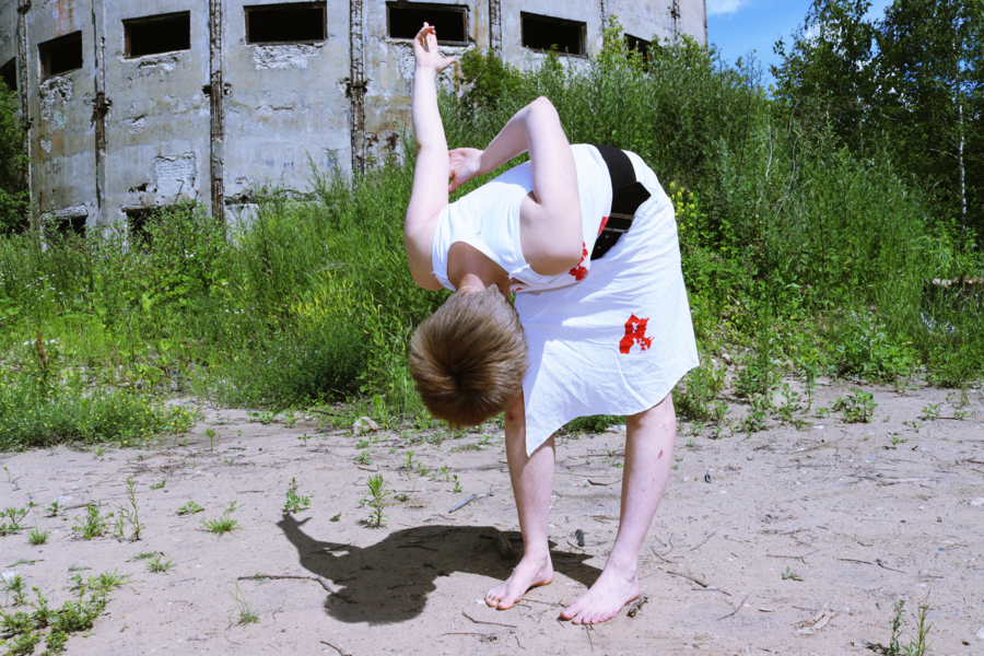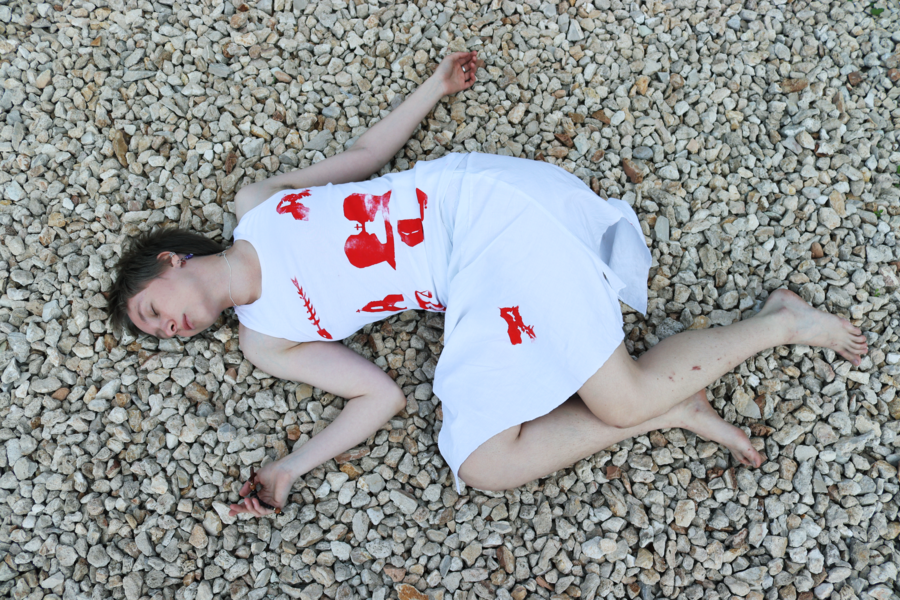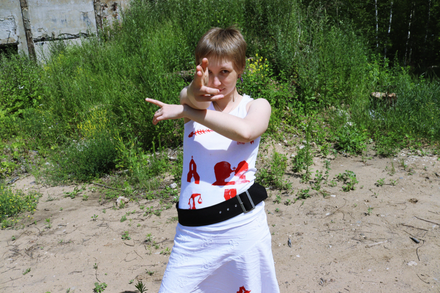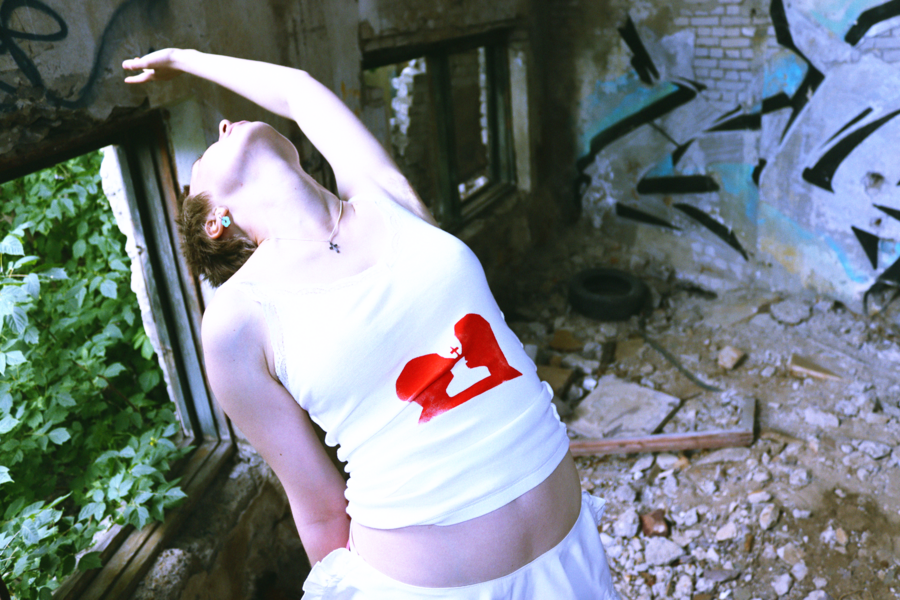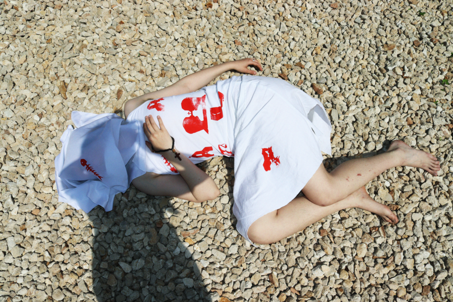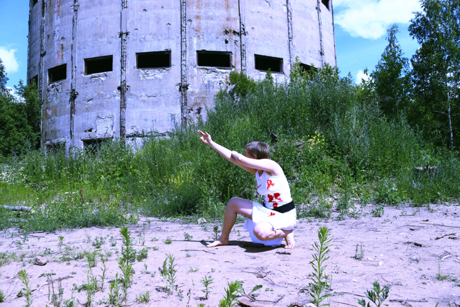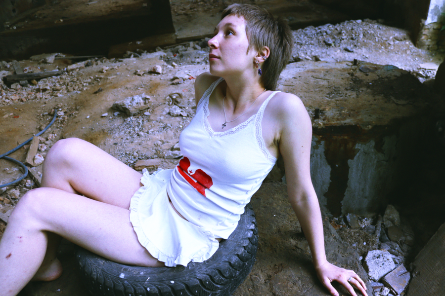 Съемка проводилась в обломках колизея, очень похожего на тот, в котором стрелял в лучи солнца и умирал диктатор Варлам Аравидзе. Я постаралась передать сюрреалистичность и символичность всего фильма, выбирала ломанные и неестественные позы.