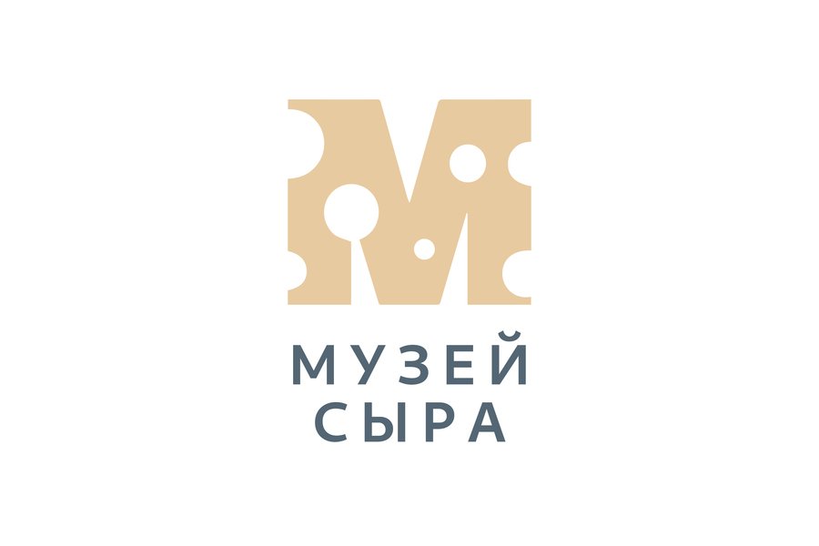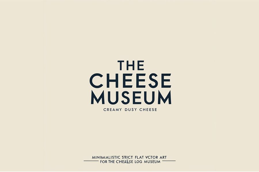 ultra-minimalistic font simple strict vector logo for the Cheese Museum, creamy dusty color palette, beige shades with little blue patches, concise, geometric, fancy, trendy, clean contemporary design, typographic, on a white background, trending on behance