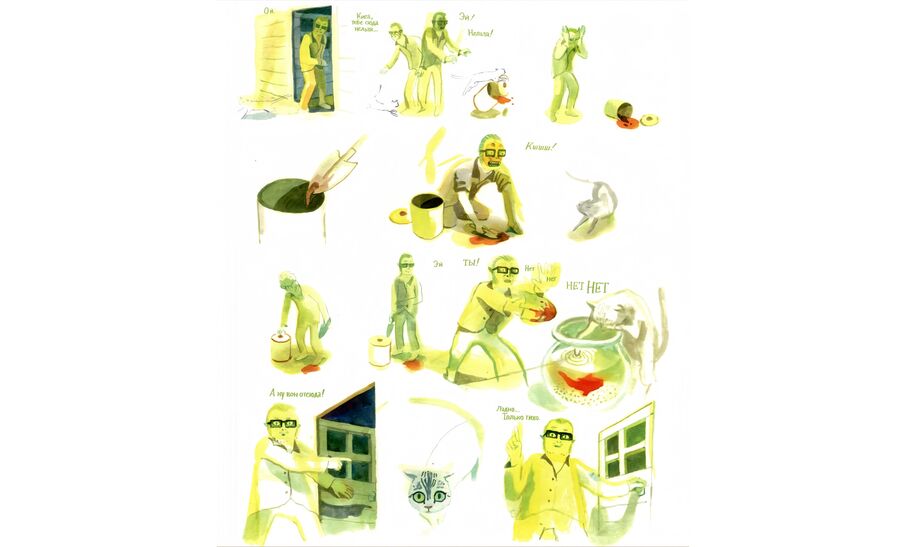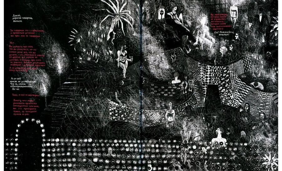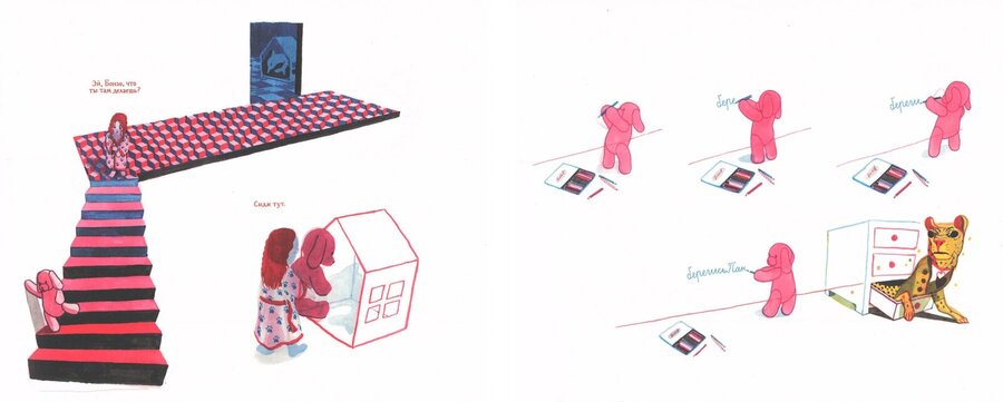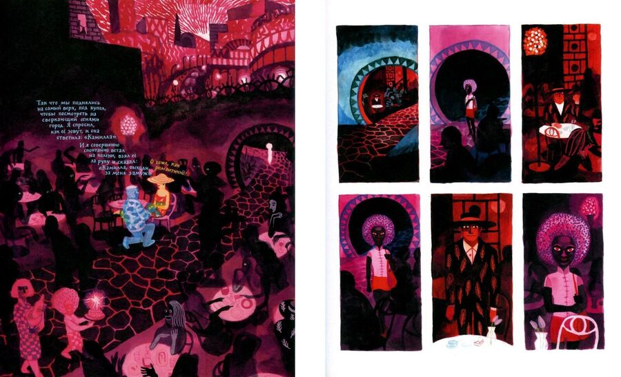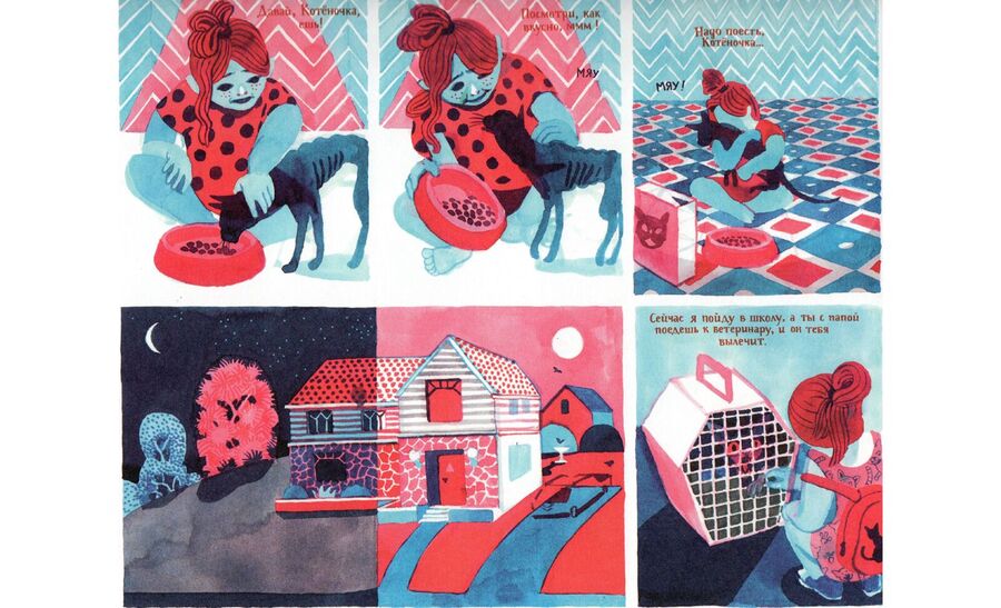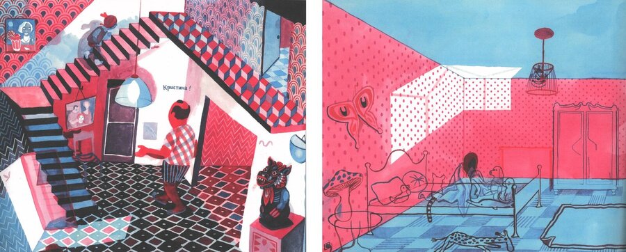 Иллюстратор приучивает читателя к обилию красок, после которых еще контрастнее возвращаться красно-синею реальность Кристины.