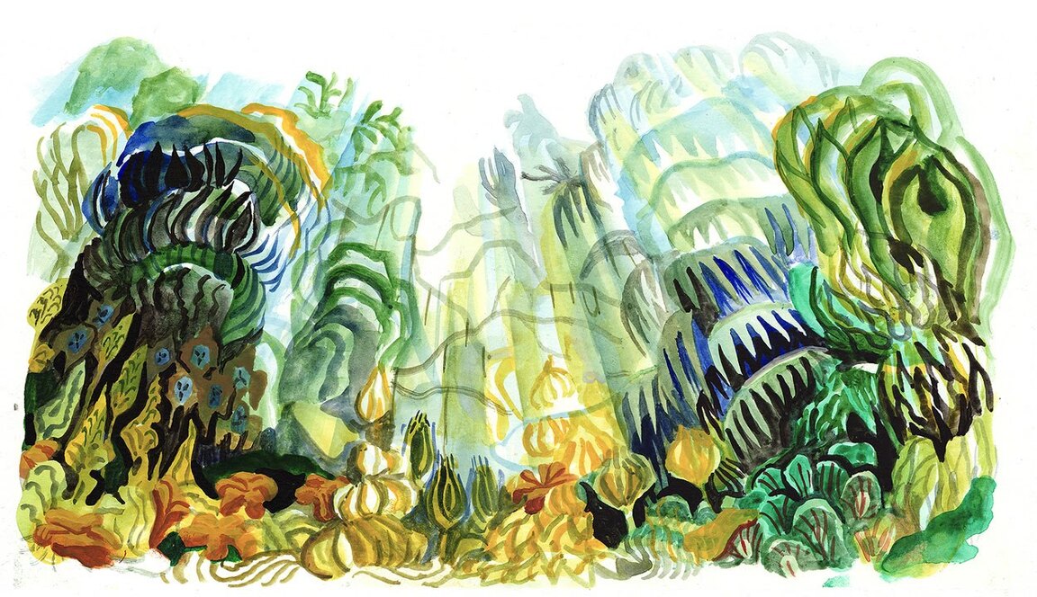Зелено-желто-синяя палитра рисует окружение истории.