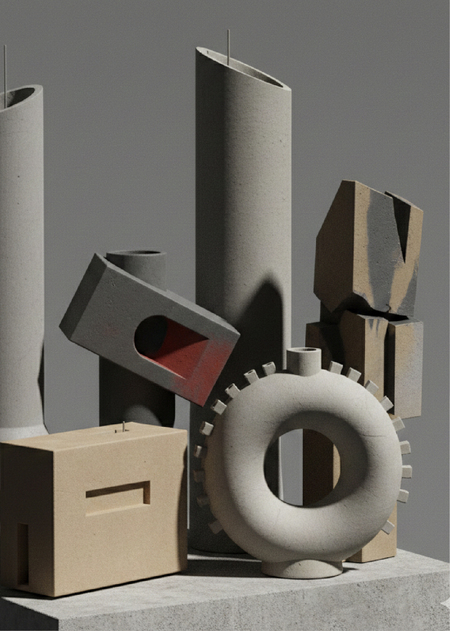 — форма должна читаться как архитектурный объект — отсутствие декоративных элементов допустима асимметрия и «фрагментарность» формы — поверхность может сохранять следы процесса — каждая модель должна быть устойчивой без дополнительной опоры