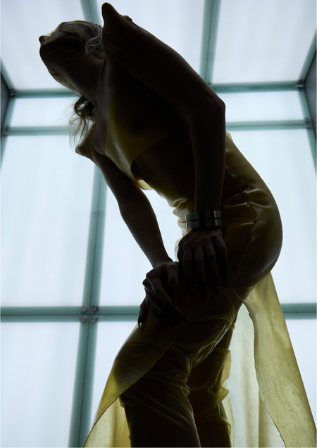 Основным визуальным и концептуальлным референсом стал фильм мученицы 2008 года. Это визуальная метафора внутренней борьбы человека перед лицом неизбежного и его последующего принятия. Образы моделей проходят три фазы: страх, страдание, просветление, отражая путь мученицы от сопротивления к духовному освобождению.
