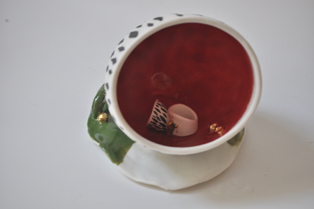 Материал: фарфор, позолота, перья, стеклянный бусины Техника: литье, ручная лепка, роспись подглазурная, надглазурная